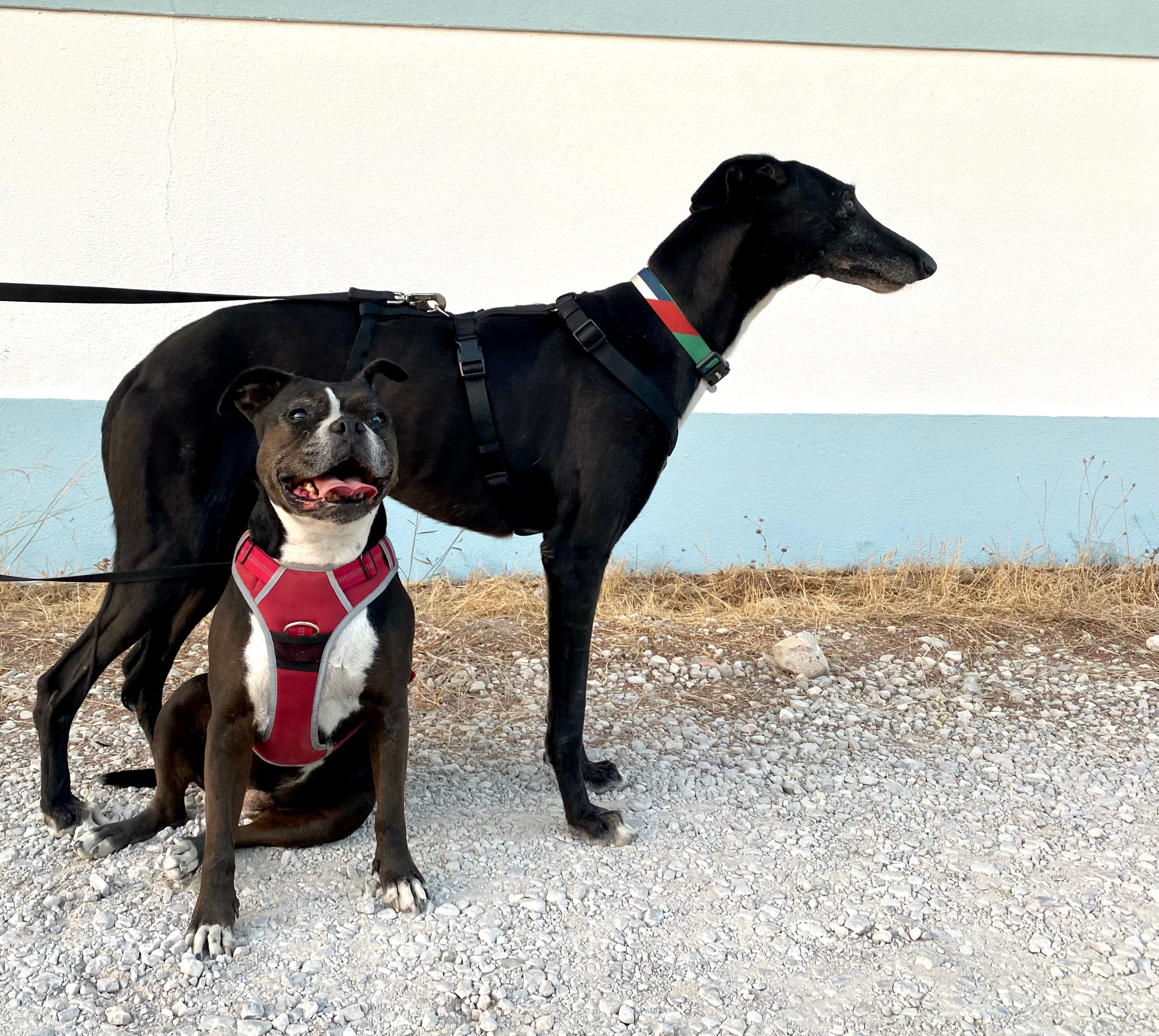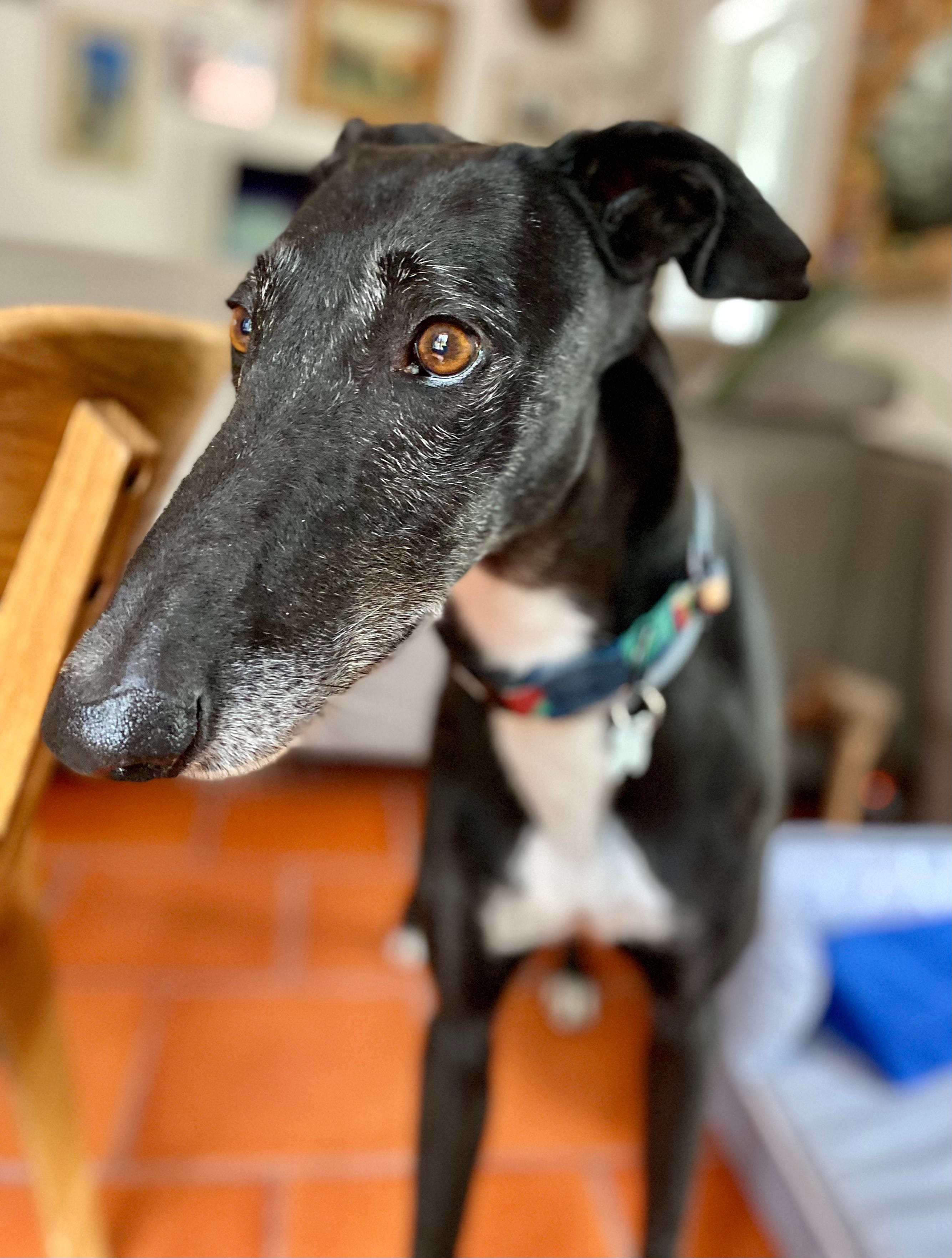 Back in Oakland, CA, my friend Michelle shares her home with two gorgeous Greyhounds, Fern & Pintxo. They were the first Greyhounds I got to know, and I thought they were delightful. Vila did too—although she’s always had a penchant for tall, handsome gentlemen because they make her feel petite.