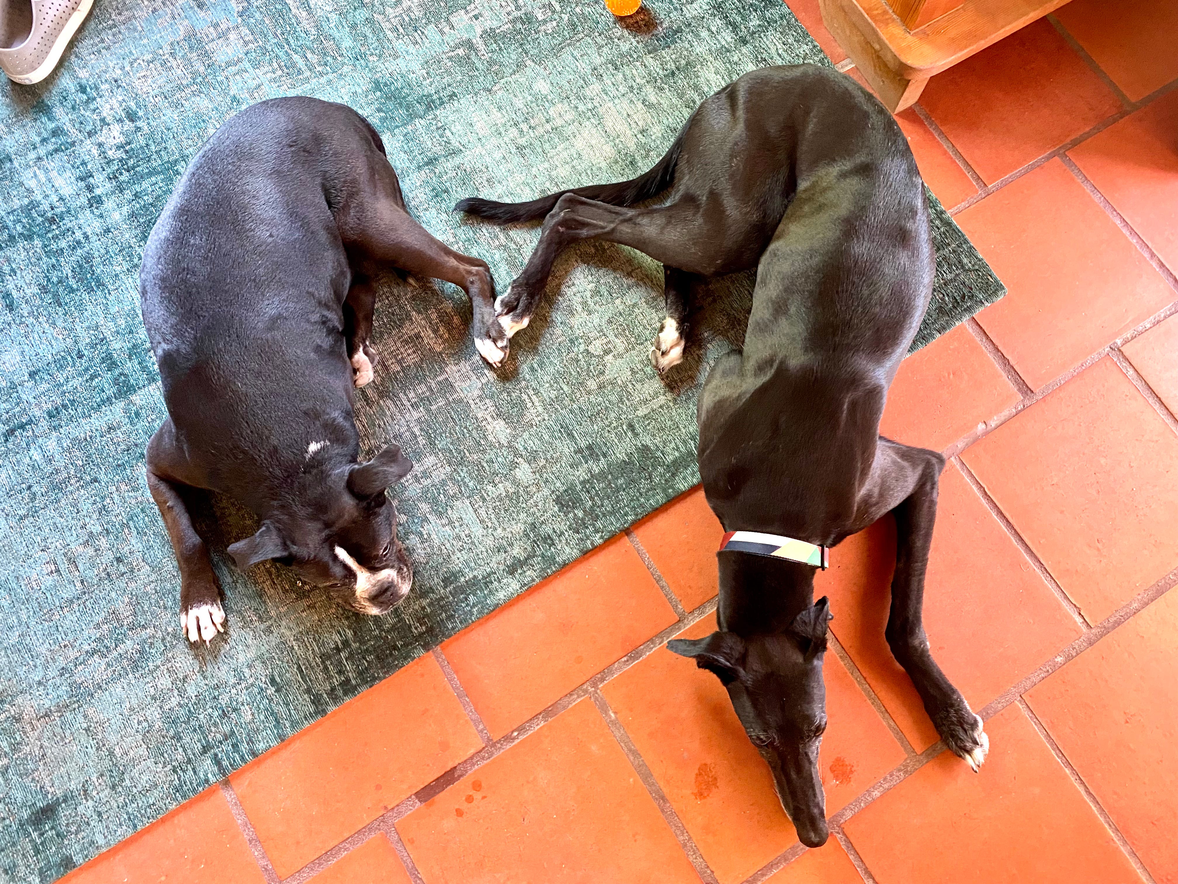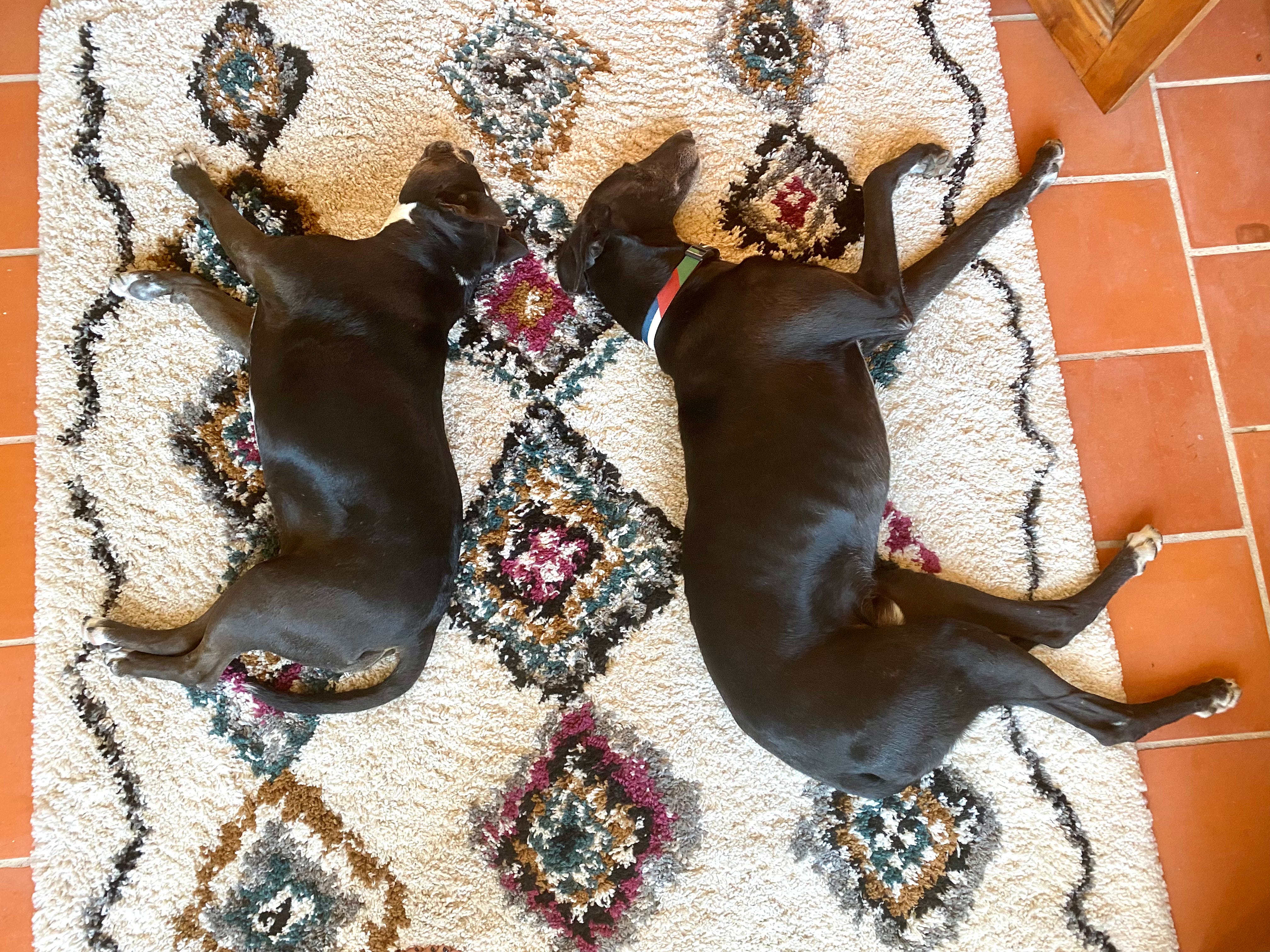 We are all utterly charmed and dazzled by our tall, sweet Spanish boy. No one so much as Vila, though. She is beyond delighted to have him here. For the first week, every time she woke up from a nap and saw that he was still here, she’d spin in ecstatic circles, box his legs with her paw and cover his muzzle in kisses, like, “You’re here! You’re STILL HERE!!!”
