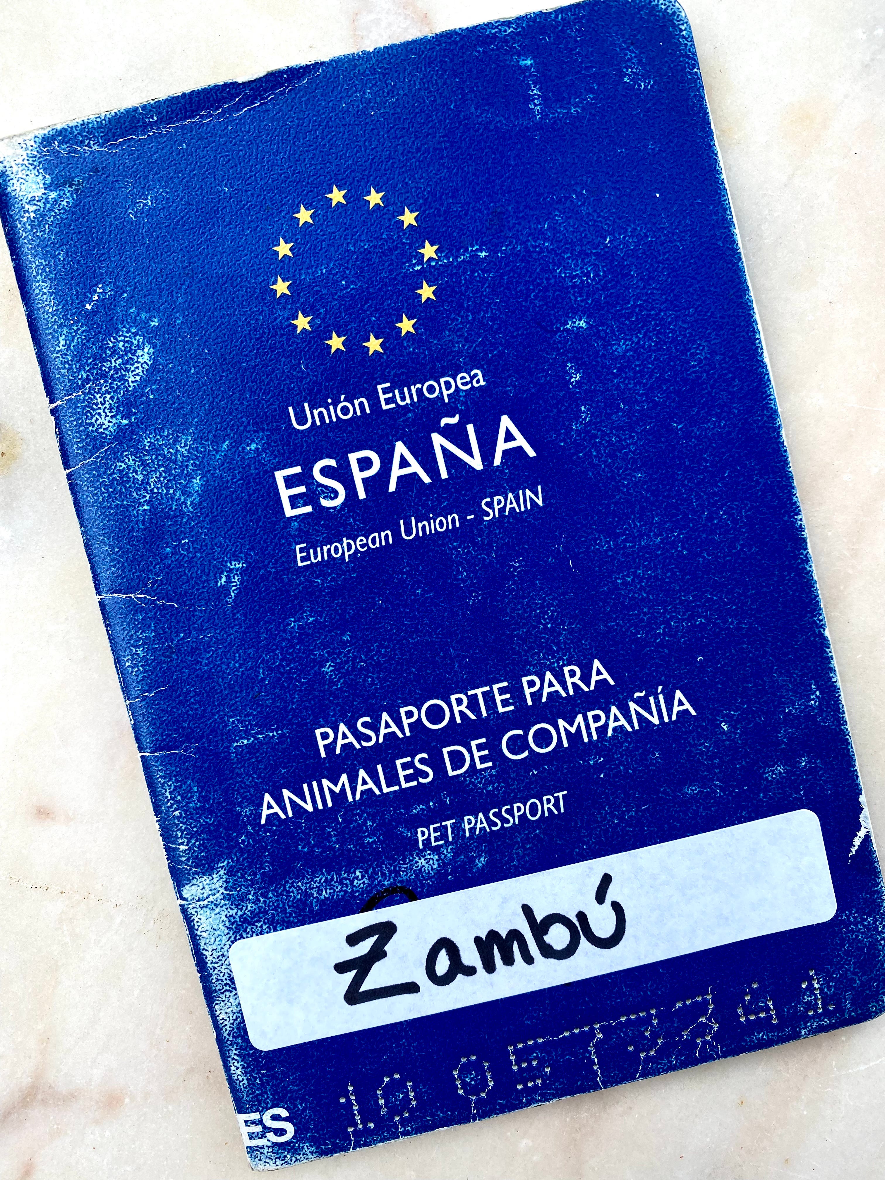 We learned that Zambú was indeed used to hunt hares in Spain, and at the age of 6 was considered too old to continue his career. Luckily for him, his previous owner did not kill or discard him, but surrendered him to a rescue—along with his Spanish passport: