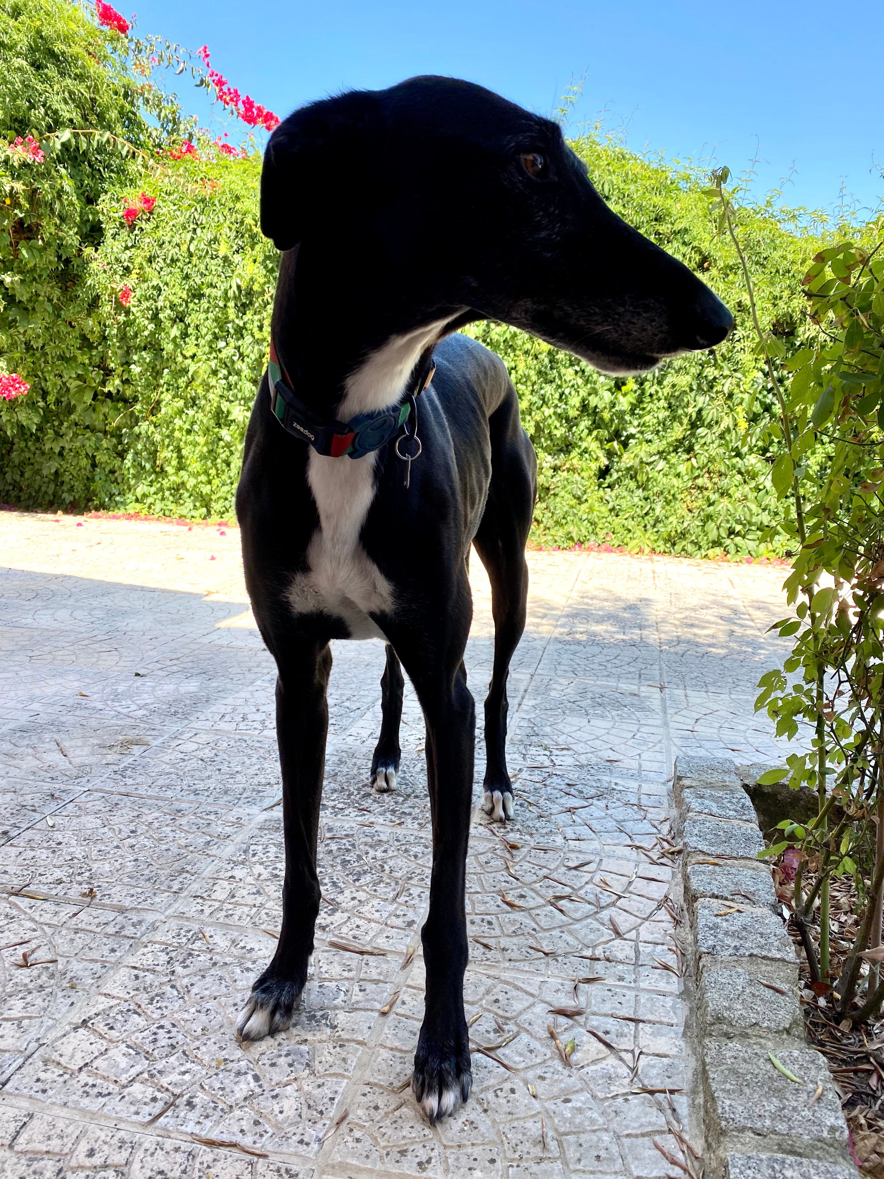 We’ve got a new family member at Oliveira do Paraíso! Meet Zambú, a tall, gorgeous Galgo gentleman. He joined our family last month, but we’ve kept him under wraps for a few weeks while he got settled in and used to us—and to his new name.